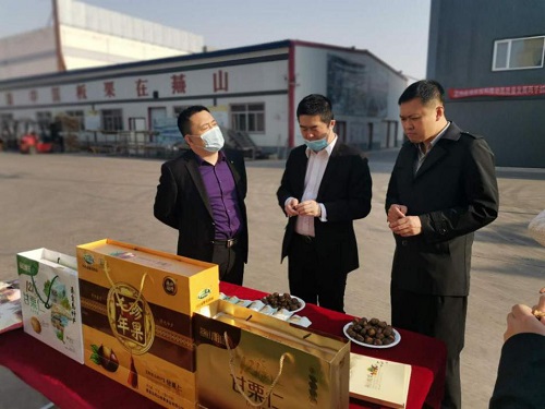 考察團(tuán)參觀我司產(chǎn)品展臺,在品嘗了現(xiàn)烤制的開口笑板栗產(chǎn)品之后,對香甜軟糯的板栗產(chǎn)品贊不絕口。